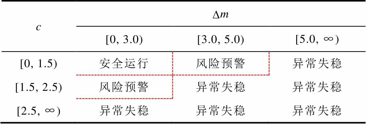 cDm [0, 3.0)[3.0, 5.0)[5.0, ∞) [0, 1.5)安全运行风险预警异常失稳 [1.5, 2.5)风险预警异常失稳异常失稳 [2.5, ∞)异常失稳异常失稳异常失稳