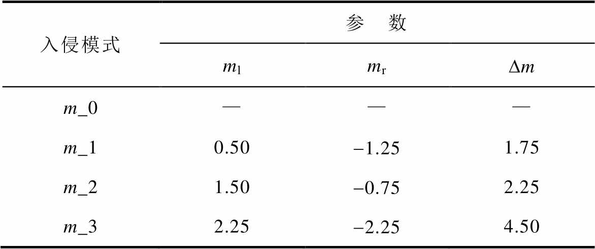选取仿真周期为80 ms,并设置IRTTS的典型突变时刻t=40 ms,以清晰展示特征信息的变化规律。结合实测数据,并参照行业标准[26],变压器所能承受的直流偏磁水平约为空载电流的2.6倍,设置特征因子见表2、表3。