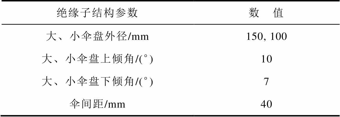 绝缘子结构参数数 值 大、小伞盘外径/mm150, 100 大、小伞盘上倾角/(°)10 大、小伞盘下倾角/(°)7 伞间距/mm40