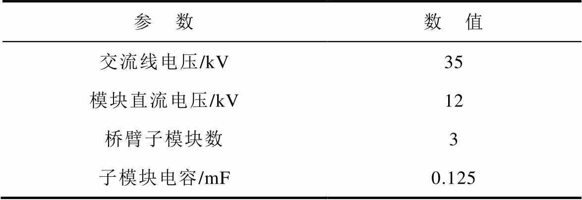 参 数数 值 交流线电压/kV35 模块直流电压/kV12 桥臂子模块数3 子模块电容/mF0.125