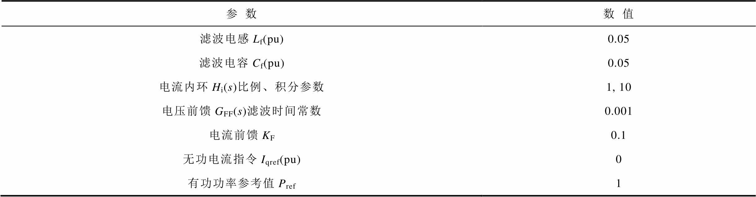 为了简化分析,本节对构网型设备做以下简化:①忽略电流内环动态。通常电流内环响应速度较快,对应的控制时间尺度接近100 Hz,对于低频问题可近似忽略其动态过程。②忽略滤波电容和滤波电感。由于电流内环(或电压外环)的前馈wLf(或wCf)抵消了滤波电感Lf(或滤波电容Cf)的影响,因此可近似忽略两者的影响。