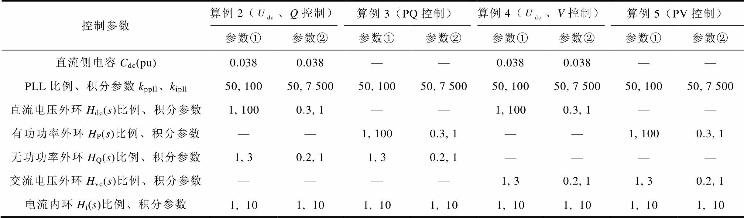 式中,YL(s)为基于自身容量基准的跟网型设备导纳传递函数矩阵;SBL为跟网型设备容量;Hdc(s)和Hp(s)分别为直流电压外环和有功功率外环中PI调节器的传递函数;Hvc(s)和HQ(s)分别为交流电压外环和无功功率外环中PI调节器的传递函数;HPLL(s)为PLLPI调节器的传递函数。具体推导参考附录第3节。