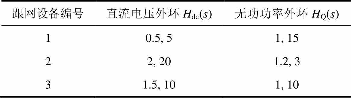 针对第1节所提第1个问题,本节主要分析构网型设备异构时,如何评估构网型设备多馈入系统的低频段稳定性,以及构网型设备异构特性对系统低频段稳定性的影响。