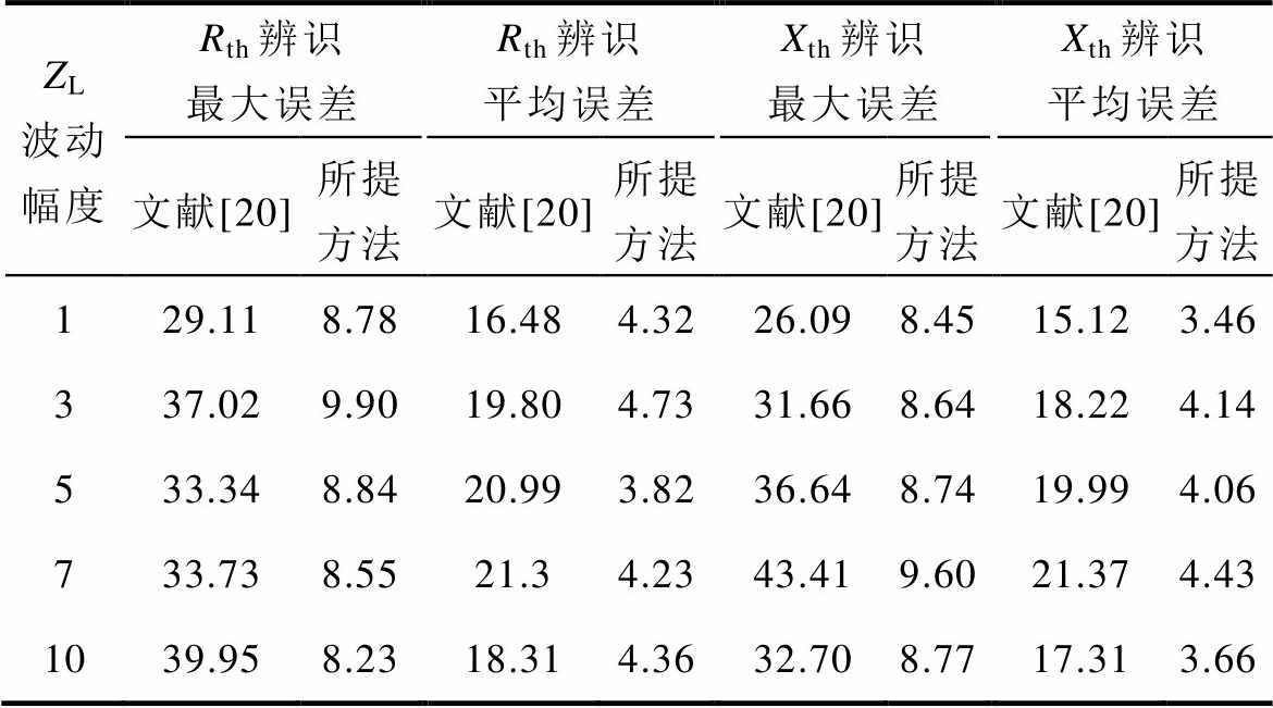 ZL波动幅度Rth辨识最大误差Rth辨识平均误差Xth辨识最大误差Xth辨识平均误差 文献[20]所提方法文献[20]所提方法文献[20]所提方法文献[20]所提方法 129.118.7816.484.3226.098.4515.123.46 337.029.9019.804.7331.668.6418.224.14 533.348.8420.993.8236.648.7419.994.06 733.738.5521.34.2343.419.6021.374.43 1039.958.2318.314.3632.708.7717.313.66