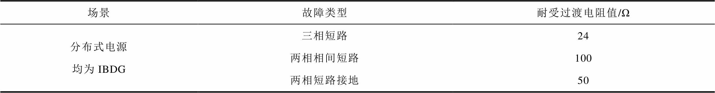 场景故障类型耐受过渡电阻值/Ω 分布式电源均为IBDG三相短路24 两相相间短路100 两相短路接地50