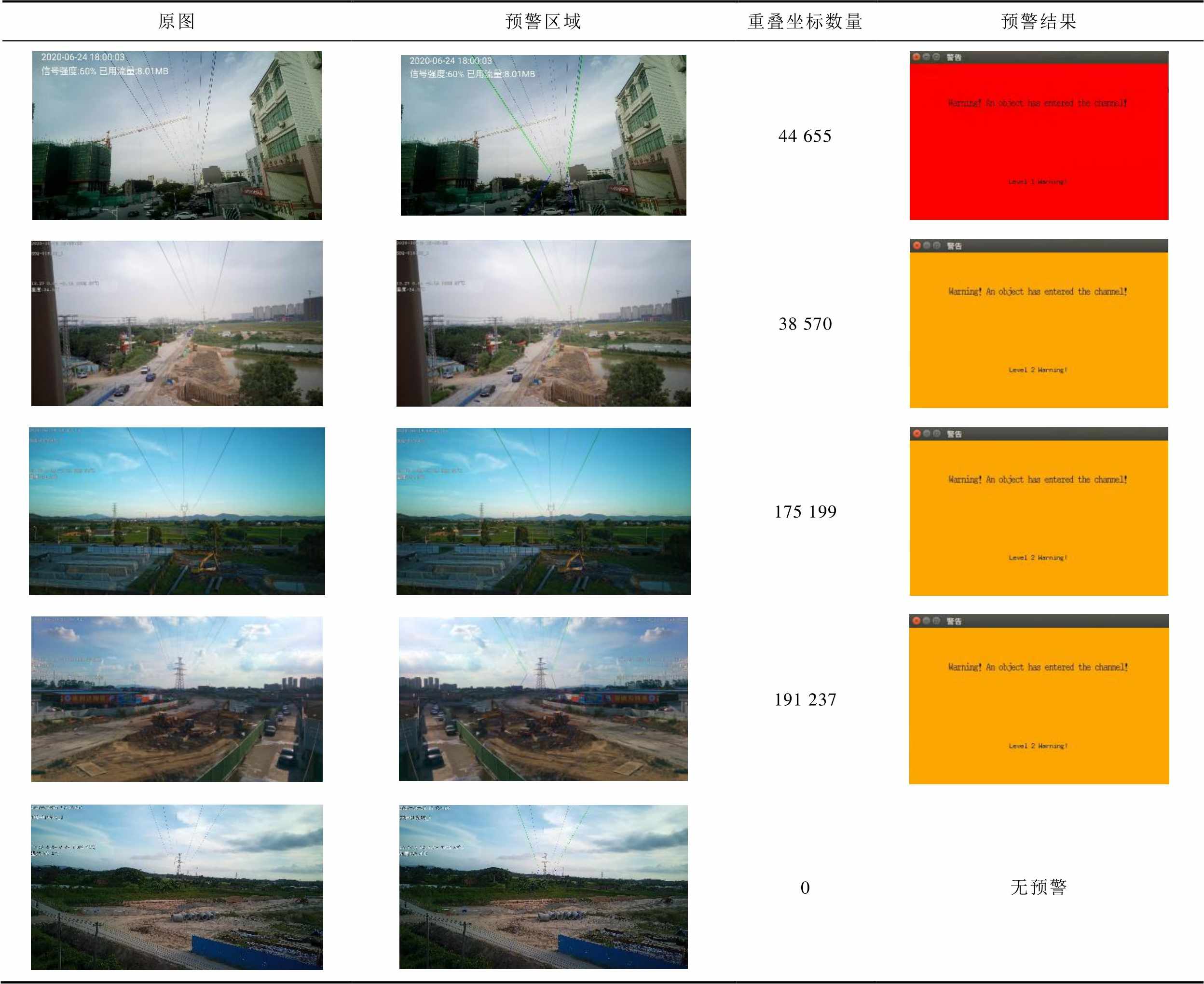 原图预警区域重叠坐标数量预警结果 44 655 38 570 175 199 191 237 0无预警
