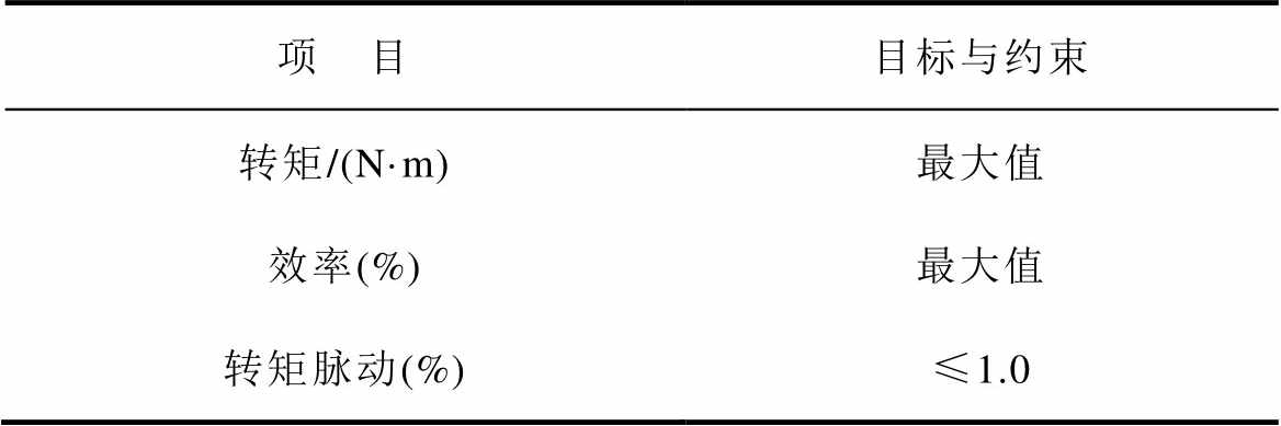 项 目目标与约束 转矩/(N·m)最大值 效率(%)最大值 转矩脉动(%)≤1.0