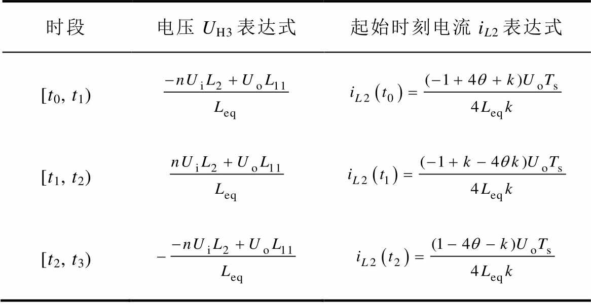 时段电压UH3表达式起始时刻电流iL2表达式 [t0, t1) [t1, t2) [t2, t3)