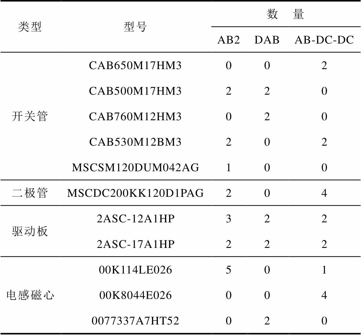 类型型号数 量 AB2DABAB-DC-DC 开关管CAB650M17HM3002 CAB500M17HM3220 CAB760M12HM3020 CAB530M12BM3202 MSCSM120DUM042AG100 二极管MSCDC200KK120D1PAG204 驱动板2ASC-12A1HP322 2ASC-17A1HP222 电感磁心00K114LE026501 00K8044E026004 0077337A7HT52020