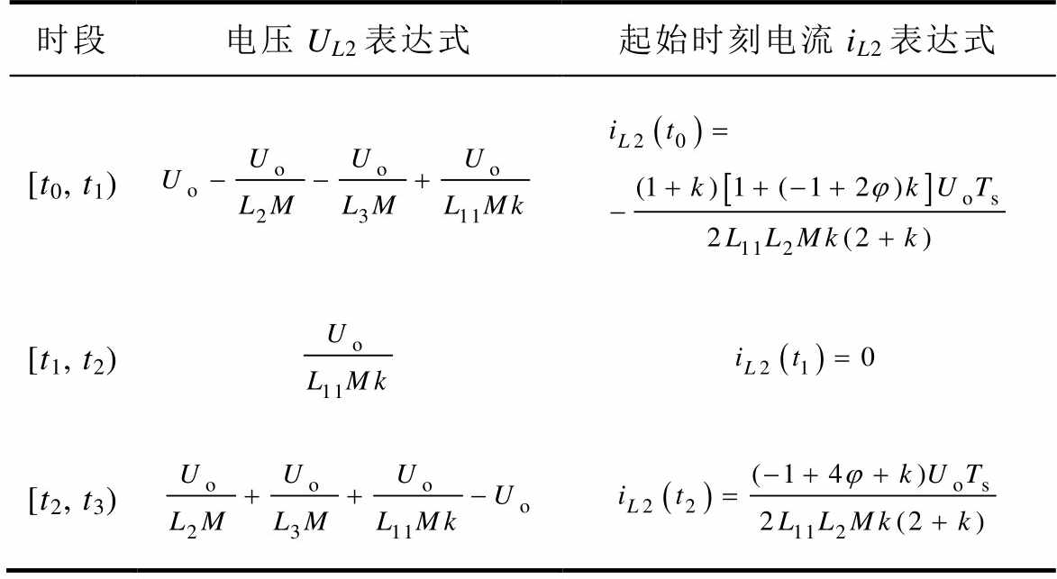 时段电压UL2表达式起始时刻电流iL2表达式 [t0, t1) [t1, t2) [t2, t3)