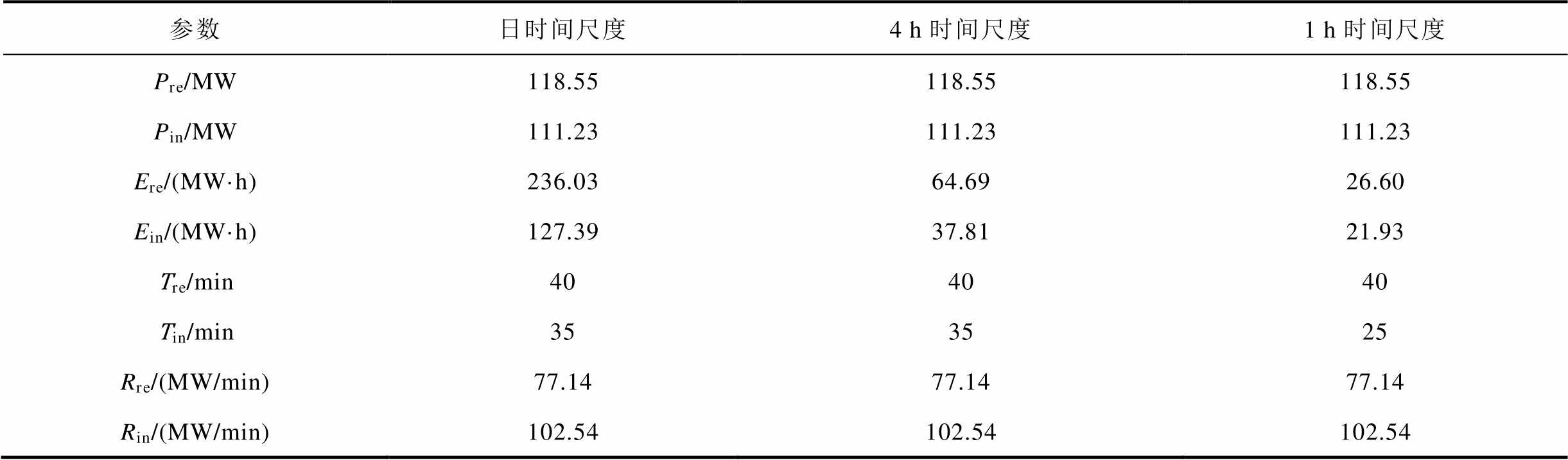 参数日时间尺度4 h时间尺度1 h时间尺度 Pre/MW118.55118.55118.55 Pin/MW111.23111.23111.23 Ere/(MW·h)236.0364.6926.60 Ein/(MW·h)127.3937.8121.93 Tre/min404040 Tin/min353525 Rre/(MW/min)77.1477.1477.14 Rin/(MW/min)102.54102.54102.54