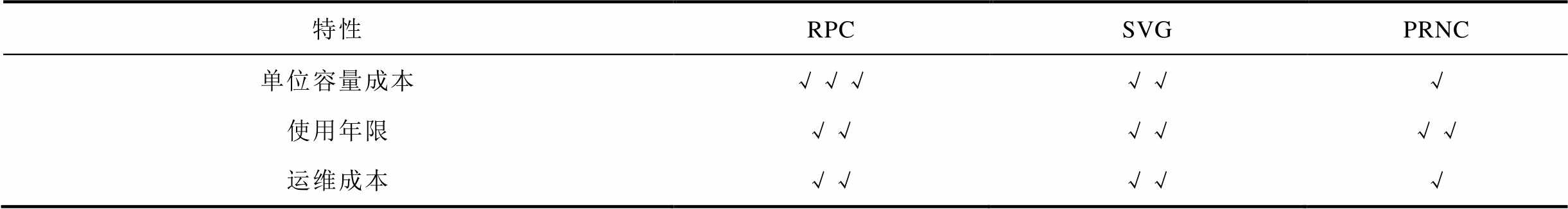 上述研究表明PRNC在同相供电系统中能降低PCC处三相电压不平衡度,目前具备相关功能的典型设备还包括SVG[26]和RPC[27-28]。RPC、SVG与PRNC的经济对比[23,29-30]见表3。表3中,“√”为数据较低,“√√”为数据中等,“√√√”为数据较高。