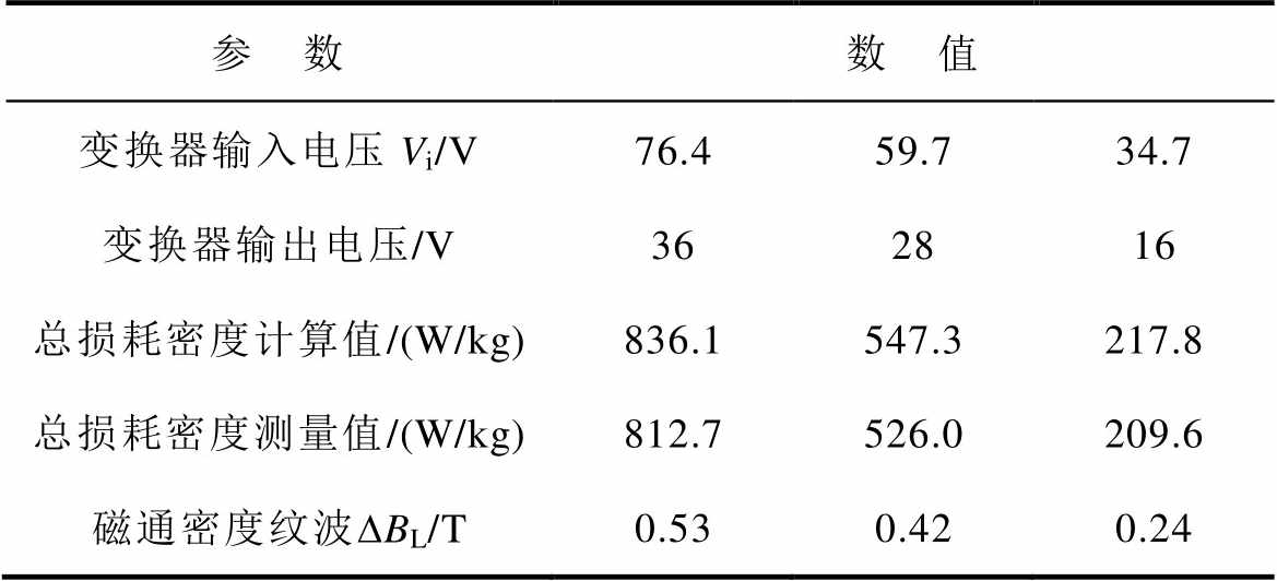 表4 不同输出电压下的高频变压器磁心损耗计算与测量结果