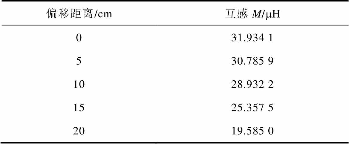 表4 线圈偏移距离对应互感参数