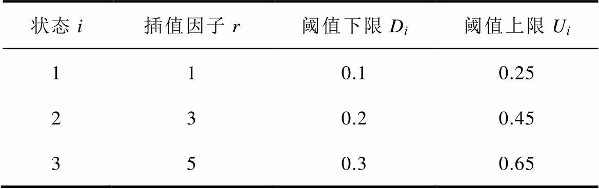 状态i插值因子r阈值下限Di阈值上限Ui 110.10.25 230.20.45 350.30.65